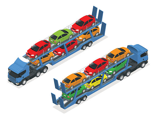 Isometric Trailer Transports Cars Stock Illustration Download Image Now Car Isometric Projection Truck Istock